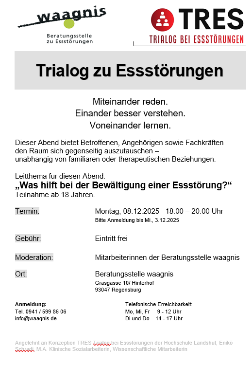 - Wo: In den Räumlichkeiten der Beratungsstelle waagnis (Grasgasse 10, 93047 Regensburg)