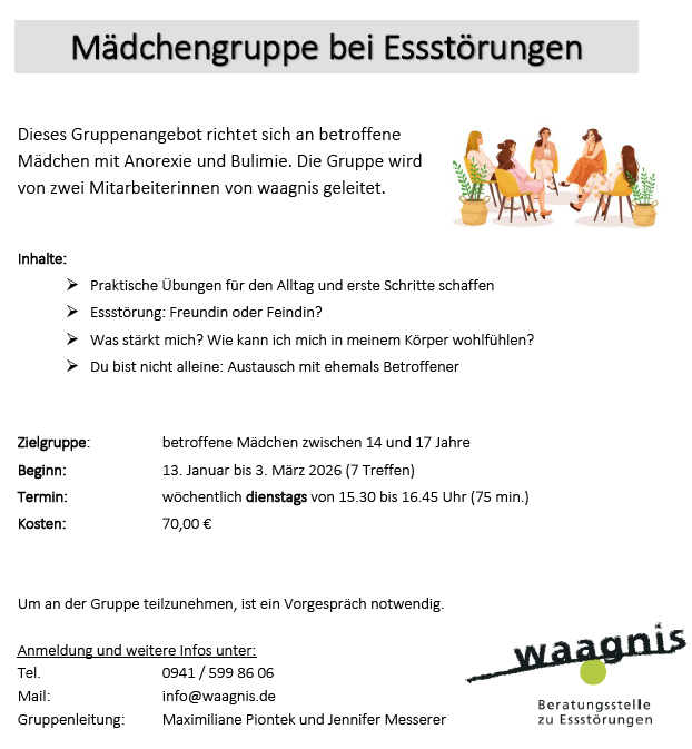 Flyer mit  zu Gruppen und Kontaktmöglichkeiten in Straubing