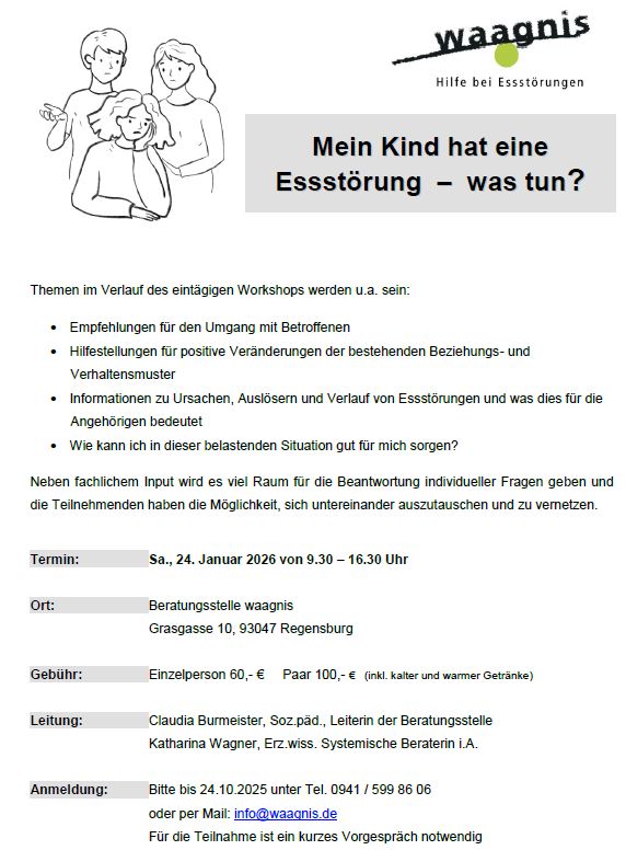 Bitte melden Sie sich frühzeitig für ein Vorgespräch mit Frau Wagner, Beraterin bei "waagnis".